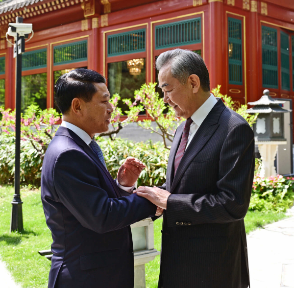 2026年4月21日,中共中央政治局委员、外交部长王毅在北京会见作为老挝人民革命党中央总书记、国家主席通伦特使专程来访的老挝人革党中央政治局委员、常务副总理沙伦赛。