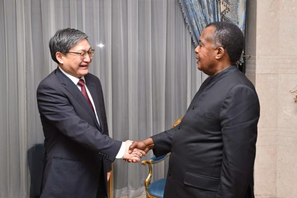 2026年2月26至28日,中非合作论坛事务大使刘豫锡访问刚果(布),萨苏总统同其会见。驻刚大使安青等在座。