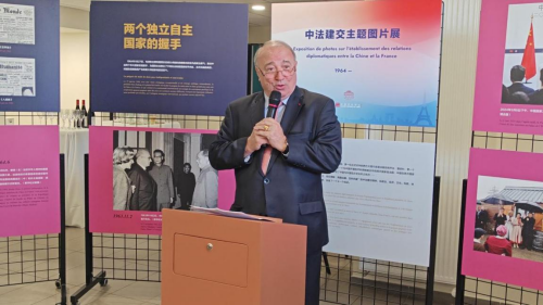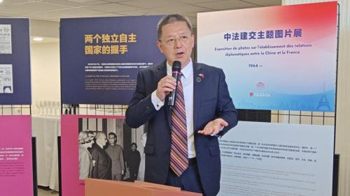 当地时间2025年4月4日,驻里昂总领馆与新中法大学协会联合举办的中法建交主题图片展隆重开幕。驻里昂总领事于江、里昂大都市副主席德罗曼、中国改革友谊奖章获得者、法国梅里埃基金会主席梅里埃和夫人、里昂新中法大学协会主席戴乐涛、副主席拉巴特等各界友好人士约120人出席本次活动。这也是图片展继在巴黎展出之后全法巡展的首站。
