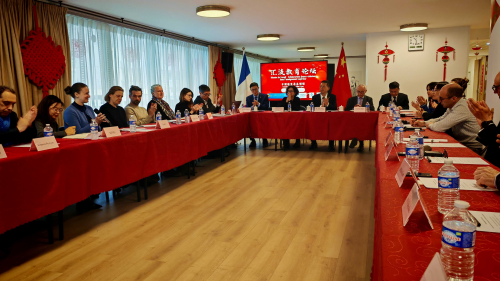这一天,由驻法国使馆、驻里昂总领馆和新中法大学协会主办的首届汇流教育论坛在驻里昂总领馆举行。驻里昂总领事于江、里昂大学联盟副主席薄思敏、新中法大学协会副主席拉巴特,以及江苏省农业代表团、奥罗阿大区议会代表等出席本次活动。来自北京、上海、广州、南京、武汉等国内城市30余所高校和里昂所在的奥罗阿大区20余所高校及科研机构共百余名代表线上线下齐聚一堂,展开一场关于深化中国有关城市和法国奥罗阿大区教育合作的热烈讨论。