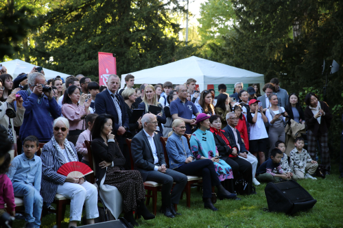 辰切尔市长在丛总领事陪同下,饶有兴致巡展中医、新能源等展台,听取专程赶来参加活动青少年介绍学习汉语心得,与他们亲切合影,定格下这美好瞬间。