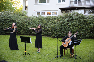 之后,旅德艺术家们用悠扬的乐声和蹁跹的舞姿,为观众呈上一场独具东方韵味的文化盛宴。中西方乐器演奏同台竞技,琵琶的雅致与长笛的空灵相互辉映,二胡的激昂与小提琴的婉转相得益彰,宛如一场跨越时空的对话,奏响文化交融的美妙乐章。最令人惊喜的是孩子们的表演:《小小执镜俑》憨态可掬,活泼灵动,一招一式尽显古典之美;中国功夫表演,虎虎生威,英气十足,将演出活动推向高潮。