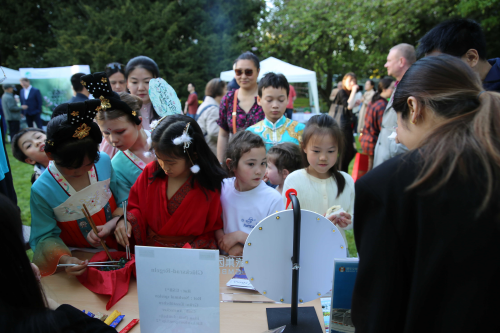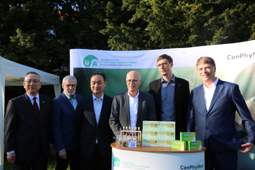 领馆草坪上,精心布置的展台令人目不暇接。中医展台,中国传统医术的神奇药效与德国先进制药技术相结合,孕育出养生药茶新品,引得众人纷纷驻足品尝,茶香四溢,滋味绵长。