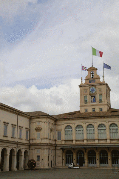 奎里纳莱宫坐落于罗马城“七丘”之一的奎里纳莱山顶,地势开阔、环境清朗,古罗马时期即为贵族聚居、神庙林立之地。文艺复兴时期,教皇选中此地兴建行宫,历经多代建筑名家扩建,形成了一座布局恢弘、风格多元、装饰精美的宫殿建筑群。宫殿内有1200个房间,总面积11万多平方米。奎里纳莱宫初为教皇驻地,19世纪成为意大利王室府第,1946年后成为意大利共和国总统官邸。数百年来,尽管具体用途几经更易,这座宫殿却始终处于国家政治生活的中心,承载着意大利民族的历史记忆。