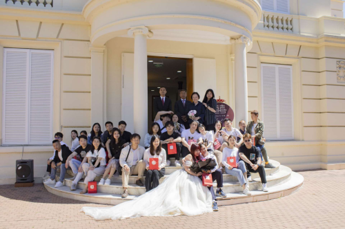 2025年5月20日,阳光正暖,微风正柔,16对新人在驻巴塞罗那总领馆登记结婚,开启人生新篇章。总领馆庭院内红灯高挂、喜字盈门,果木繁茂、花草缤纷,一派喜庆祥和景象。