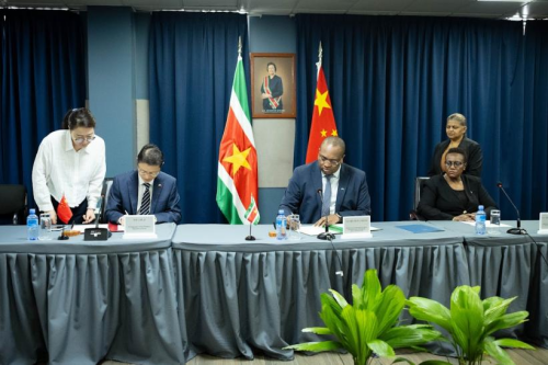 2026年1月30日,驻苏里南大使林棘同苏外长鲍瓦签署中国向苏里南提供优惠贷款的补充框架协议。苏财政部长韦纳曼出席仪式。