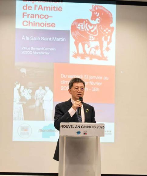 2026年1月31日,驻里昂总领事于江赴领区蒙特利马市,出席市政府同蒙特利马中法交流协会共同举办的“中国年”节庆活动。