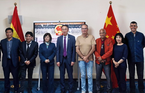 2026年3月17日,驻玻利维亚使馆举办全国两会精神媒体吹风会暨“对话中国大使”活动,理性报、日报、美洲电视台、拉美通讯社等媒体记者出席。