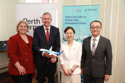 2026年3月17日,驻珀斯总领事付莉华出席珀斯机场、中国南方航空、西澳旅游局等举办的广州—珀斯直航庆祝会并致辞。西澳州旅游部长惠特比、珀斯机场首席商务及航空官霍尔斯格罗夫、南航澳新区域总经理孙志兴及各界代表近100人出席。
