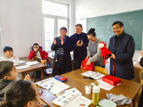 费大使对两校办学成绩表示祝贺,感谢全体教职工的辛勤付出,详细询问办学授课情况,充分肯定两校在传承中国文化、搭建语言桥梁方面的积极贡献。费大使与学生们亲切互动,讲解暖心包中五禽戏香包的文化典故,鼓励他们从祖(籍)国的悠久历史和灿烂文化中汲取养分,争做中华文化传播的小使者。师生们感谢费大使专程前来看望,纷纷表示将继续努力学习中文,为中比民间友好作出贡献。