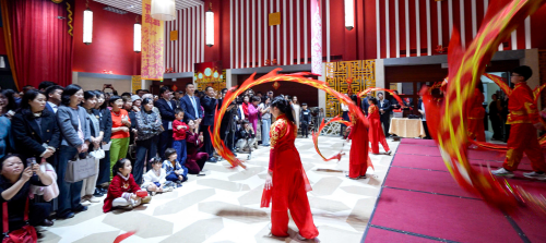 招待会现场喜气洋洋、年味十足。来宾一同欣赏了精彩的文艺演出。