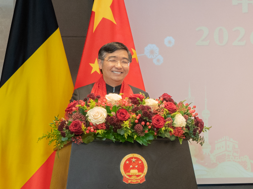 2026年2月9日,驻比利时使馆举办马年春节招待会,驻比利时大使费胜潮,200余位旅比华侨华人、中资机构、留学人员代表等出席。