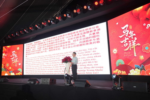 2026年3月28日,驻胡志明市总领事唐立出席越南中国总商会胡市分会2026年慈善义卖暨新春游园嘉年华活动。越南工商会胡市分会主席陈玉廉、胡市友联副主席黎氏姚玲、胡市外事厅政治经济处副处长陈廷武海及在越中资企业代表、华侨华人等1000余人参加。