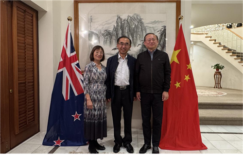 2026年4月11日,驻奥克兰总领事陈世杰在官邸会见新西兰皇家科学院新当选院士呼爱国教授。