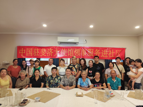 2026年4月11日至12日,驻斐济使馆临时代办汪元率工作组赴斐济瓦努阿岛(北岛)开展“领事服务进社区”活动,为侨胞提供领事证件咨询、政策讲解等服务,拉巴萨、萨乌萨乌等地几十名侨胞参加。