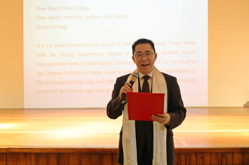 2026年2月5日,驻马耳他大使张佐应邀出席“欢乐春节”中国艺术团与马尔萨斯卡拉市圣约阿希姆小学学生联欢活动并致辞。该市市长(马中友协副主席)卡莱亚及市政委员、马耳他中国文化中心主任陈晓、校方代表及400多名学生参加。