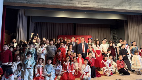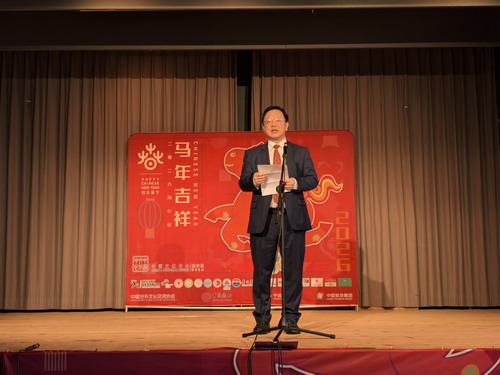 2026年2月14日,驻瑞士大使钱敏坚出席由伯尔尼中国文化中心主办的2026“欢乐春节”·玩转中国年活动并致辞,瑞友好人士、当地中文学校师生等约400人参加活动。
