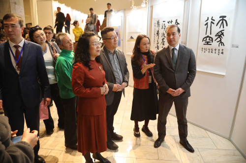 本次展览由比什凯克中国文化中心和吉国家历史博物馆共同举办,展出了中国画家的50余幅作品。中国画家并在现场同吉观众互动,介绍中国国画艺术。