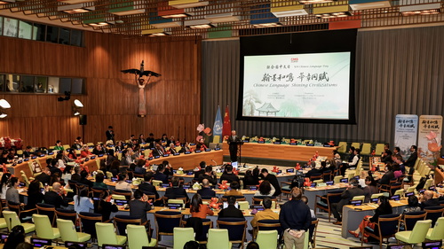 2026年4月13日,常驻联合国代表团与中央广播电视总台举办联合国中文日庆祝活动,常驻联合国代表傅聪大使,联合国秘书处高官、各国使节逾200人出席。