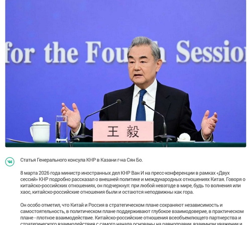 2026年3月10日,驻喀山总领事向波在俄罗斯鞑靼斯坦通讯社、乌里扬诺夫斯克州《真理报》发表署名文章《中俄关系始终“风雨不动安如山”》,宣介中共中央政治局委员、外交部长王毅两会记者会内容。文章全文如下: