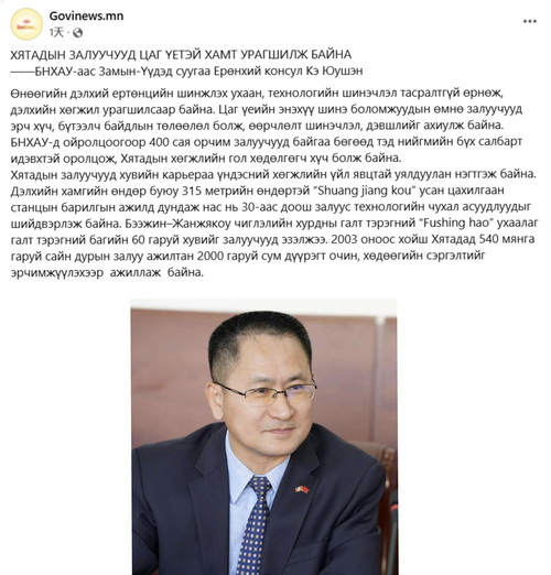 2026年4月25日,在五四青年节来临之际,驻扎门乌德总领事柯友生在领区多家媒体平台上发表署名文章《中国青年与时代同行》,展示新时代中国青年风貌,促进中蒙青年交流。全文如下: