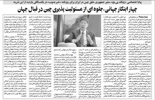 驻伊朗大使丛培武在伊南部知名媒体《南方新闻报》发表署名文章《四大全球倡议彰显中国担当》