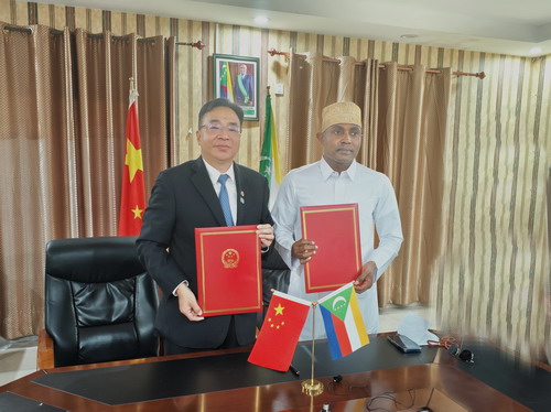 驻科摩罗大使黄峥出席“中科发展合作协定”签字仪式