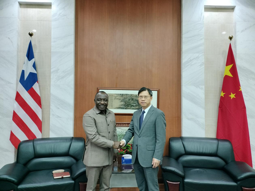 2026年2月27日,驻利比里亚大使尹承武会见利比里亚参议院筹款财政预算委员会主席莫耶。