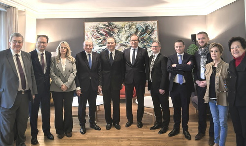 2026年3月25日,驻法国大使邓励应邀出席法国国民议会外委会举行的工作早餐会,介绍“十五五”规划的主要目标、战略布署和重大举措,以及中国发展给中法合作带来的新机遇。双方还就国际形势和地区热点进行了深入交流。邓励大使阐述中方立场。