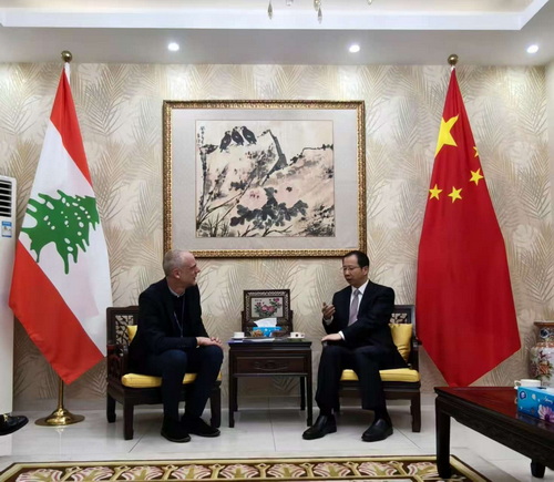 2026年3月23日,驻黎巴嫩大使陈传东会见国际移民组织国别代表马修·卢西亚诺。
