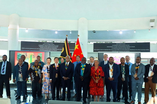2026年3月26日,驻瓦努阿图使馆同瓦议会联合举办中瓦建交44周年招待会,活动在中方90年代援建的瓦议会大厦举行。驻瓦努阿图大使李名刚,瓦总统、议长、总理、在岛部长和议员、部分瓦前总理及驻瓦外交使团代表等百余人出席。