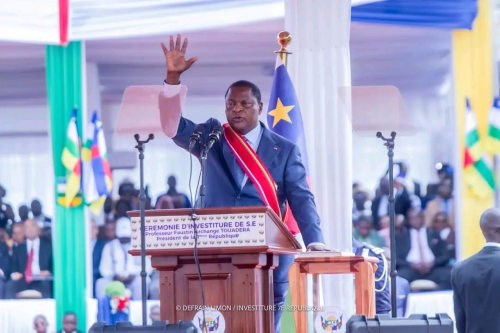 2026年3月30日,中非共和国总统福斯坦—阿尔尚热·图瓦德拉新一届任期就职典礼在首都班吉两万人体育场隆重举行,中非政府、政党、议员、军队等各界代表,以及多位非洲国家元首、各国驻中非使节参加。驻中非大使李钦峰应邀出席就职典礼。