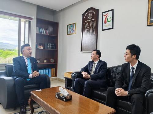 2026年4月8日,驻卡拉奇总领事杨云东在伊斯兰堡拜会巴基斯坦外交部中国司司长瓦兹尔,双方高度评价中巴两国全天候友谊和全方位合作,就下步加强信德和俾路支两省与中方在农业、产业、经贸等领域务实合作交换意见。