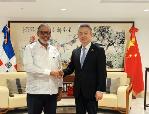 2026年4月10日,驻多米尼加大使陈鲁宁会见多社会发展总局局长古斯曼,就中多关系、两国发展合作等进行友好交流。