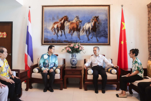 驻宋卡总领事汪志坚与泰国新任交通部副部长讪佩共庆泰国新年