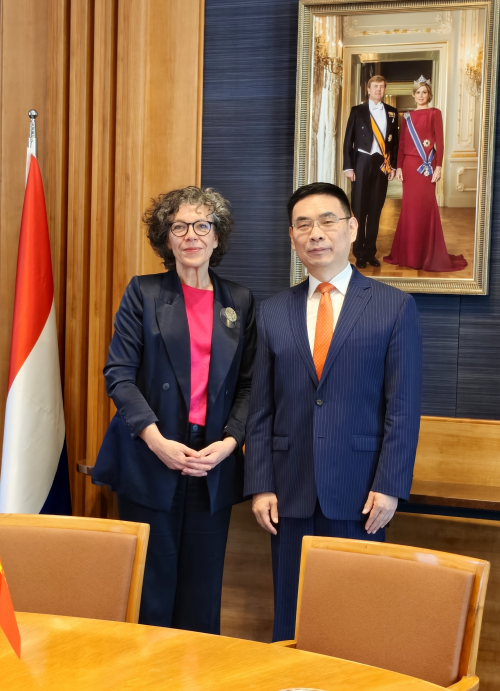2026年4月16日,驻荷兰大使申博拜会荷兰经济事务与气候大臣赫贝特,双方就两国经贸合作和共同关心的问题交换意见。