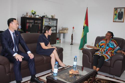 2026年4月17日,驻圣多美和普林西比大使徐迎真拜会圣普教育、文化、科学和高等教育部长阿布雷乌,介绍中国“两会”、“十五五”规划和中非人文交流年等活动相关情况,并就进一步推动两国教育领域合作交换意见。