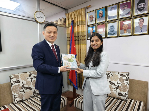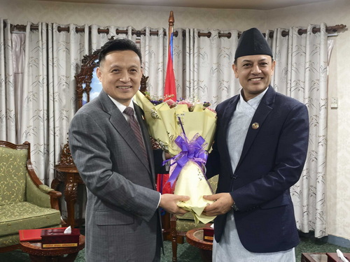 2026年4月28日,驻尼泊尔大使张茂明拜会尼泊尔新任众议院议长多尔·普拉萨德·阿亚尔。