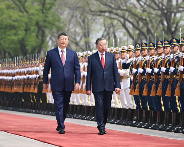 2026年4月15日上午,中共中央总书记、国家主席习近平在人民大会堂同来华进行国事访问的越共中央总书记、国家主席苏林举行会谈。